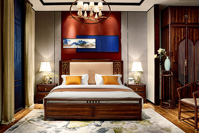 新中式风格应用在高档酒店的设计当中,通常此类酒店的豪华包厢都采用套间设计装修,在就餐区边上的休息区必须配套相同风格的新中式家具,比如:沙发、茶几、衣帽架等,整体协调一致,风格统一,彰显酒店豪华大气,让就餐的客人一进入酒店包厢倍感尊贵,因此整体配套的新中式酒店包厢设计才具有如此高效果。