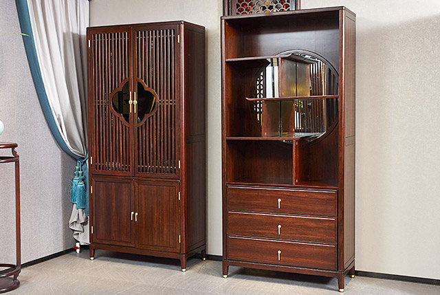 中式设计空间常以博古架、屏风、隔断、纱帘等作为障景,配合灯光渲染,在虚实交错的空间里,隔中有连,连中有隔,于通透与隐隔之间,既有古朴雅致、缥缈含蓄的风韵,又能形成中式空间韵律、节奏和情调的曲折连绵,为中式设计空间平添一份探幽之情趣。